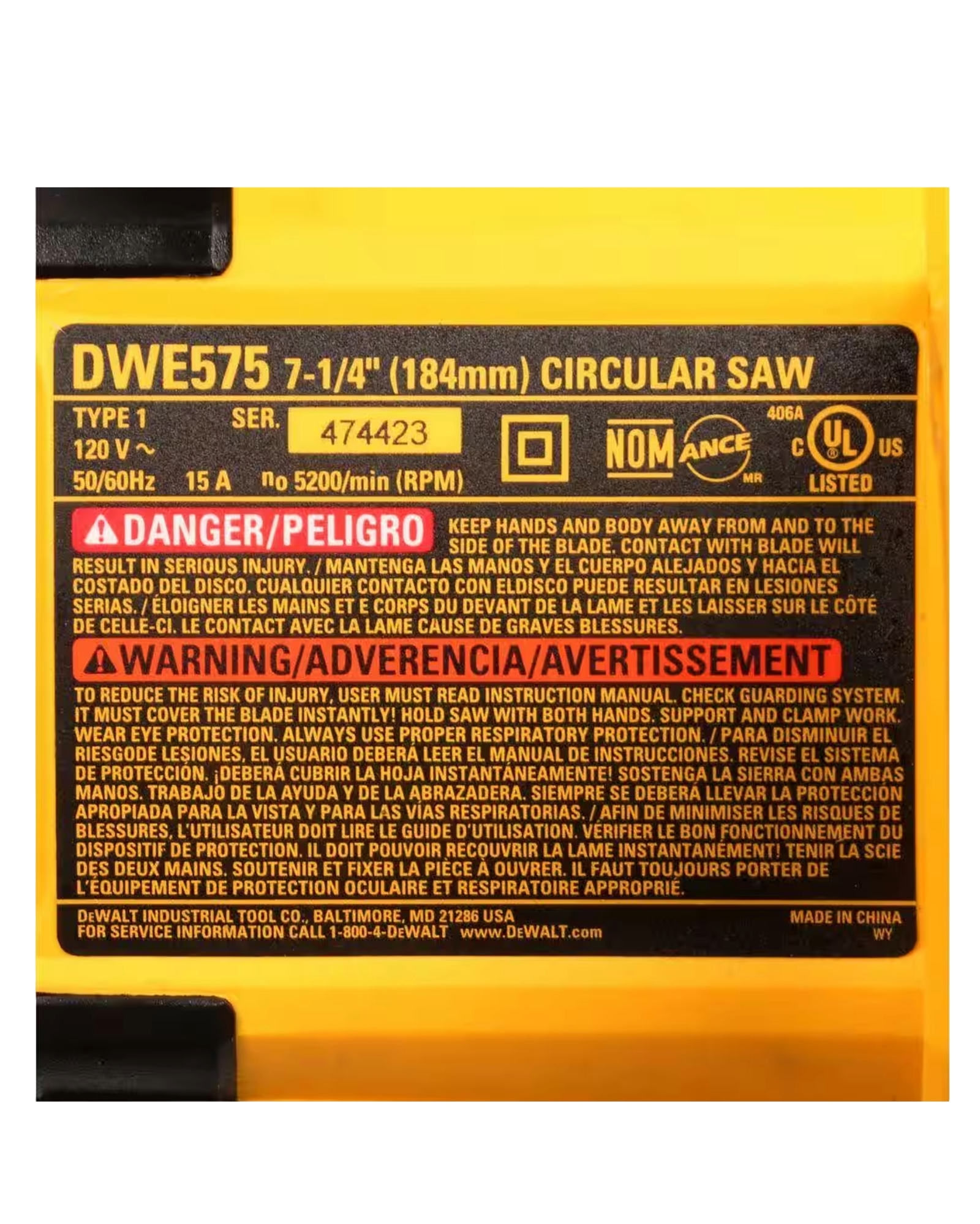 Dewalt Circular Saw Corded 15 AMP 7-1/4IN